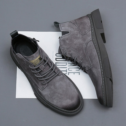 潮牌马丁靴男真皮高帮鞋秋冬季加绒休闲英伦风复古短靴中帮工装靴