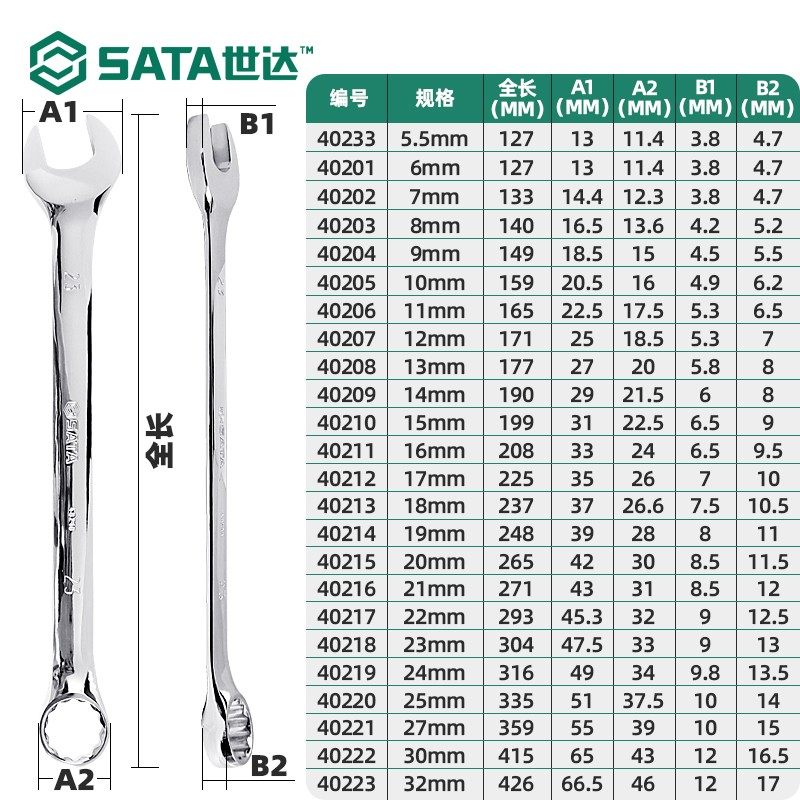 Sata世达欧式两用扳手梅花开口呆扳手13mm12/8/14/17汽修板子套装