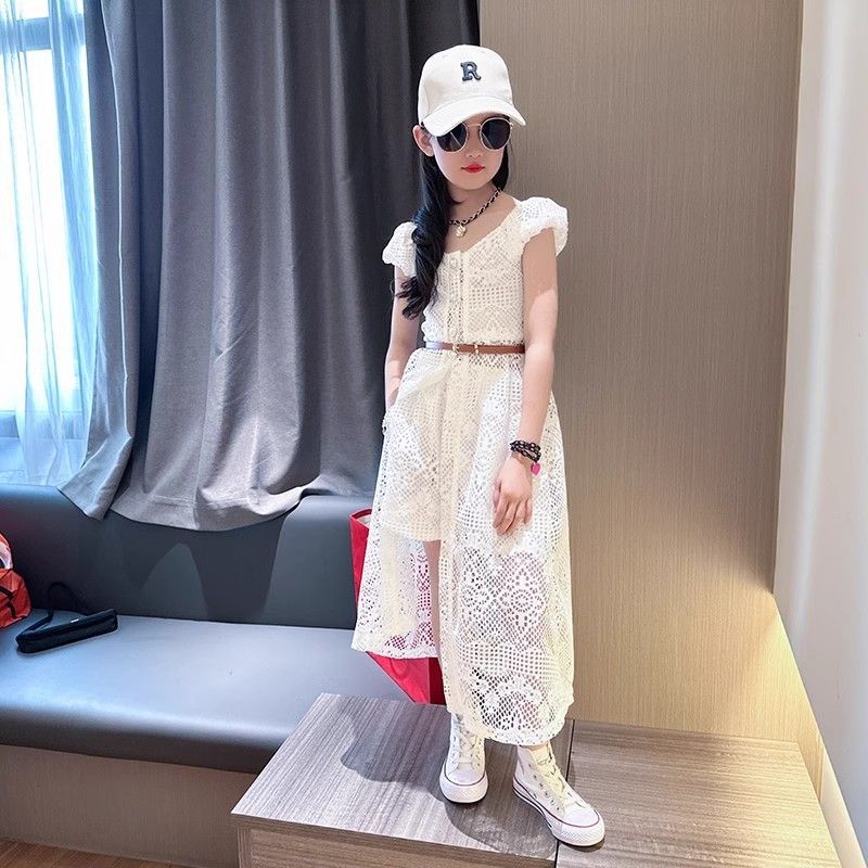 女童2025夏季新款韩系洋气中大儿童蕾丝开衫连衣裙高腰短裤套装裙