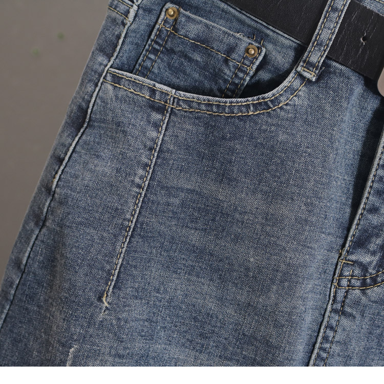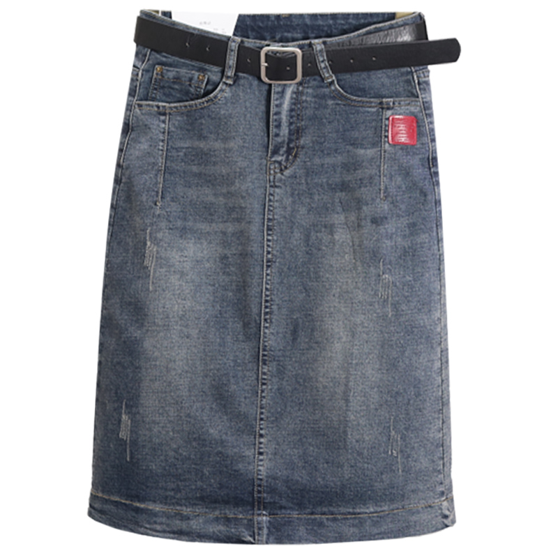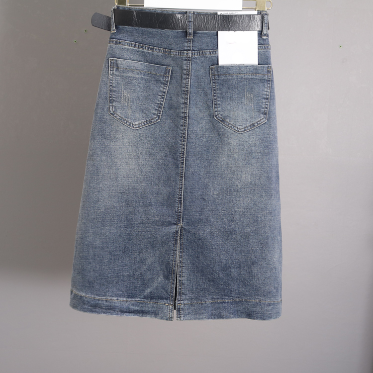弹力牛仔裙子女春秋浅蓝色a字