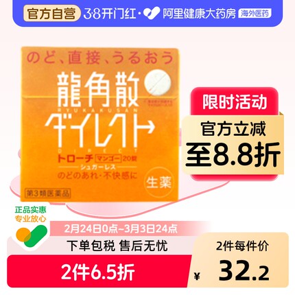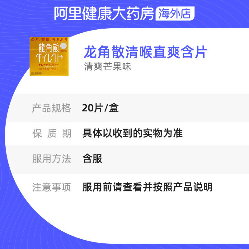 日本进口龙角散清喉含片芒果味20片嗓止咳利咽缓咳舒正品片剂润喉