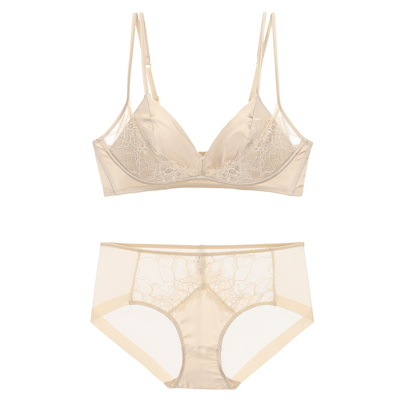雅小姐性感真丝超薄三角杯内衣桑蚕丝诱惑蕾丝无钢圈双罩杯文胸女