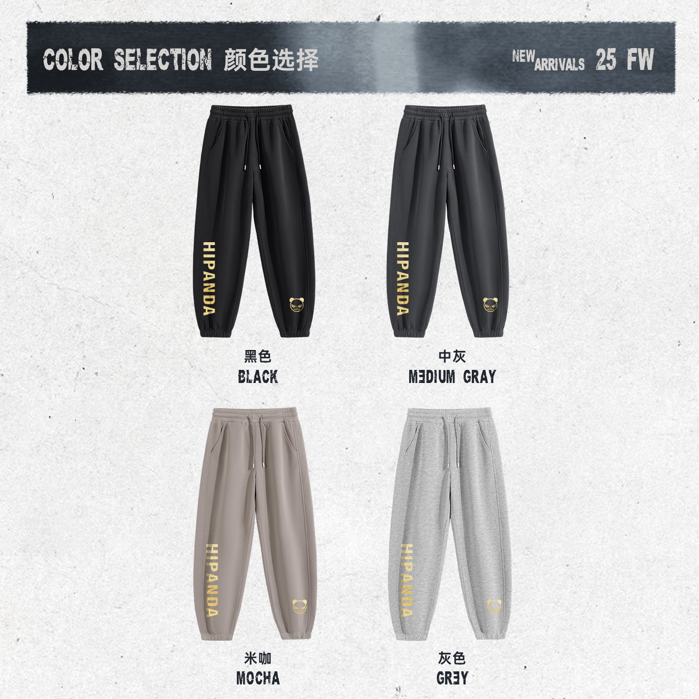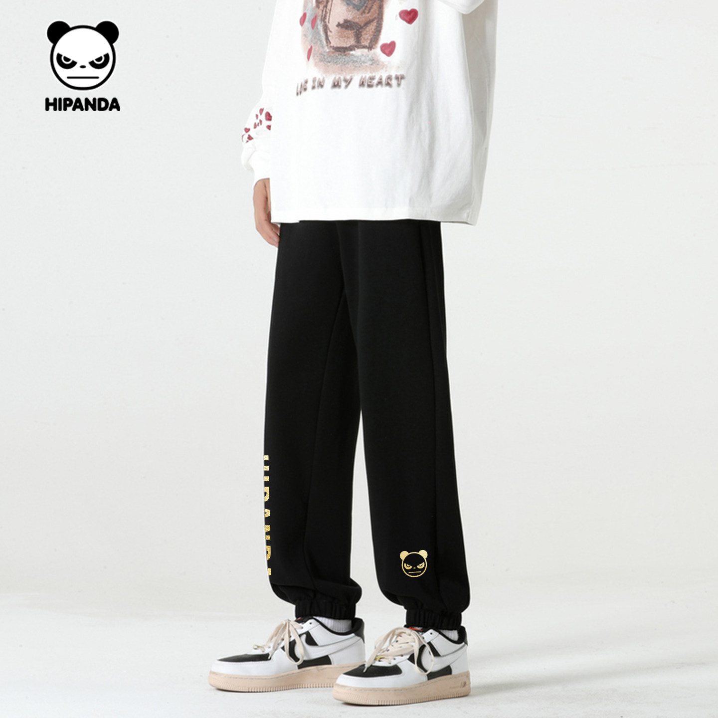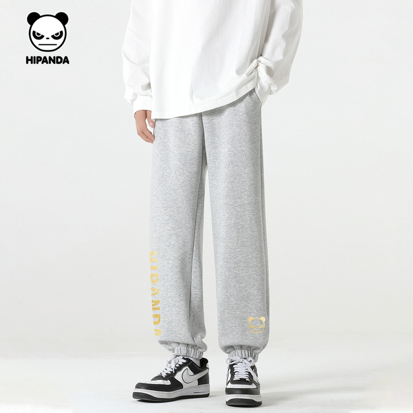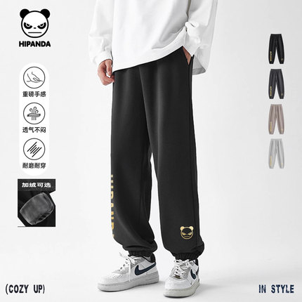 Hipanda你好熊猫重磅设计感美式加绒束脚裤男2025冬季新款休闲裤