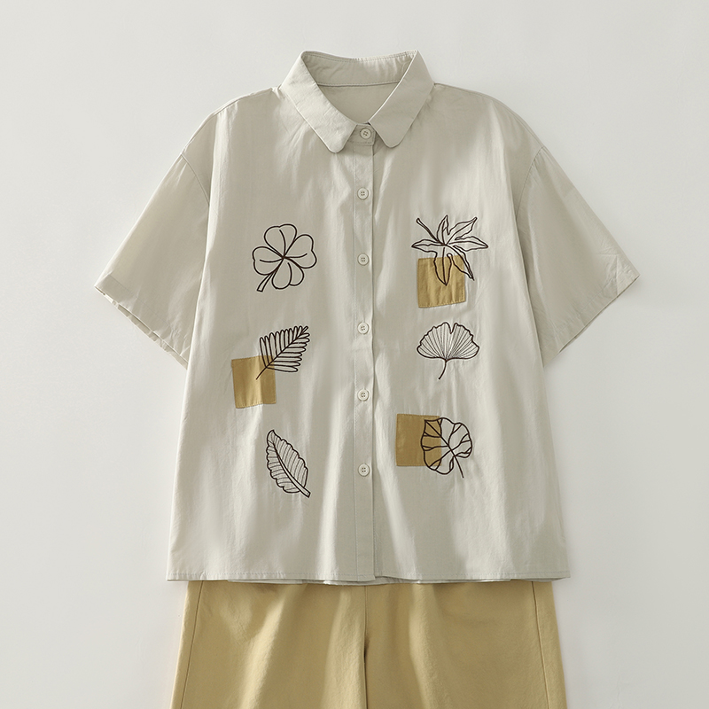 森系复古刺绣棉麻衬衫女夏季新款文艺翻领衬衣宽松休闲苎麻上衣潮