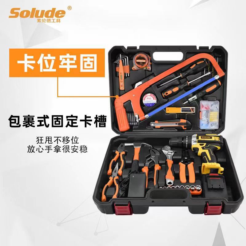 索伦德52件维修多功能五金工具锂电冲击电钻家用工具箱组合组套