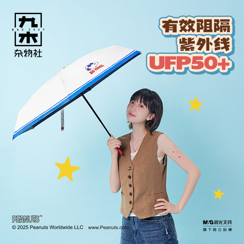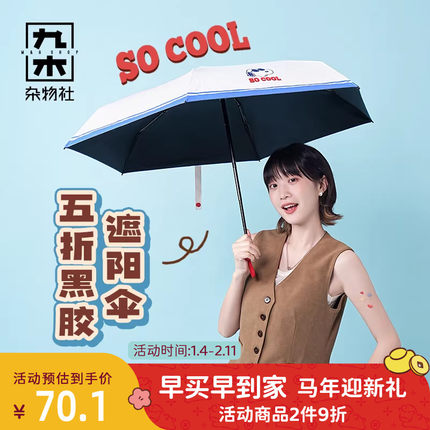 九木杂物社史努比折叠雨伞女晴雨两用遮阳伞便携黑胶太阳伞