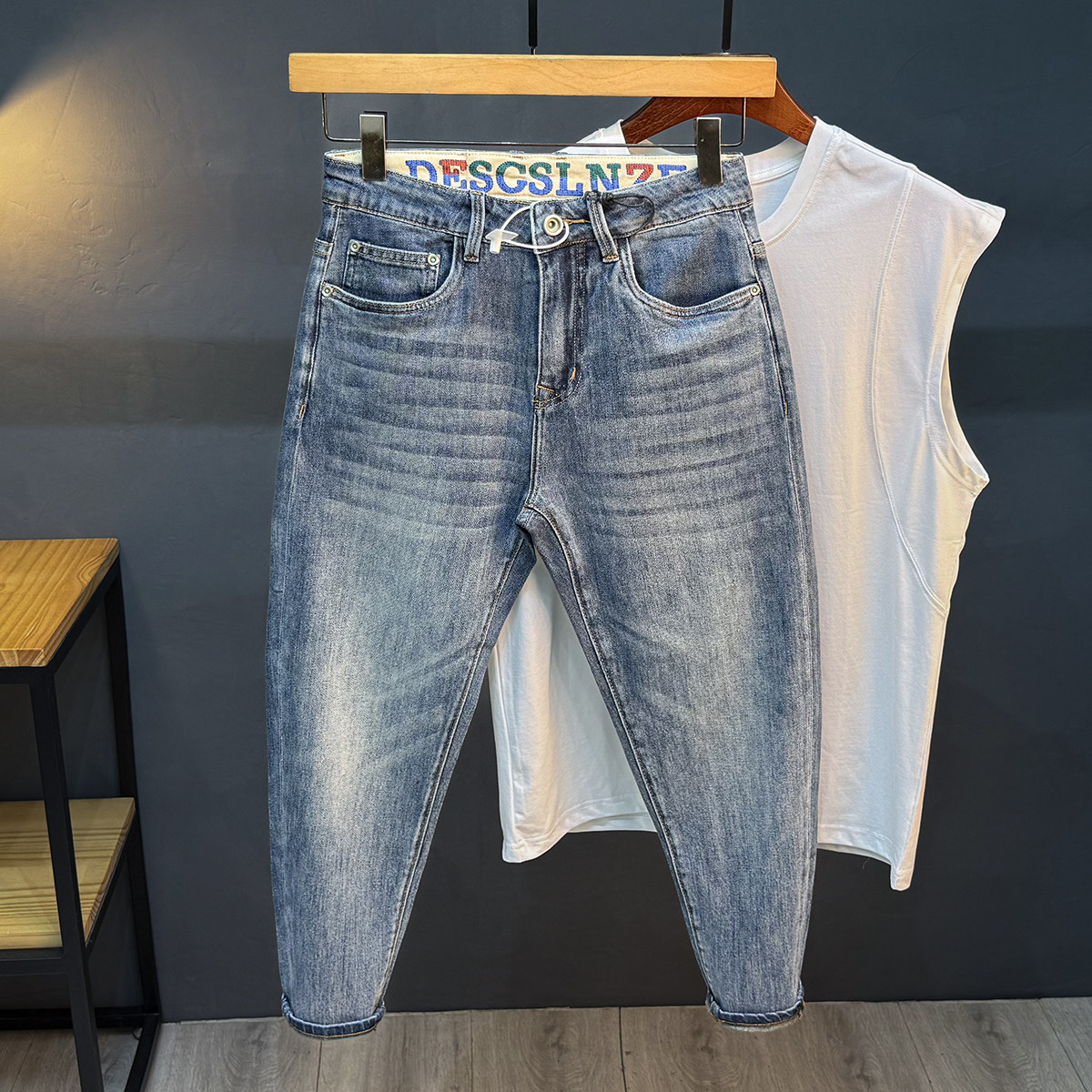 微宽松哈伦小脚裤夏季薄款八分牛仔裤男休闲弹力修身九分弹力长裤