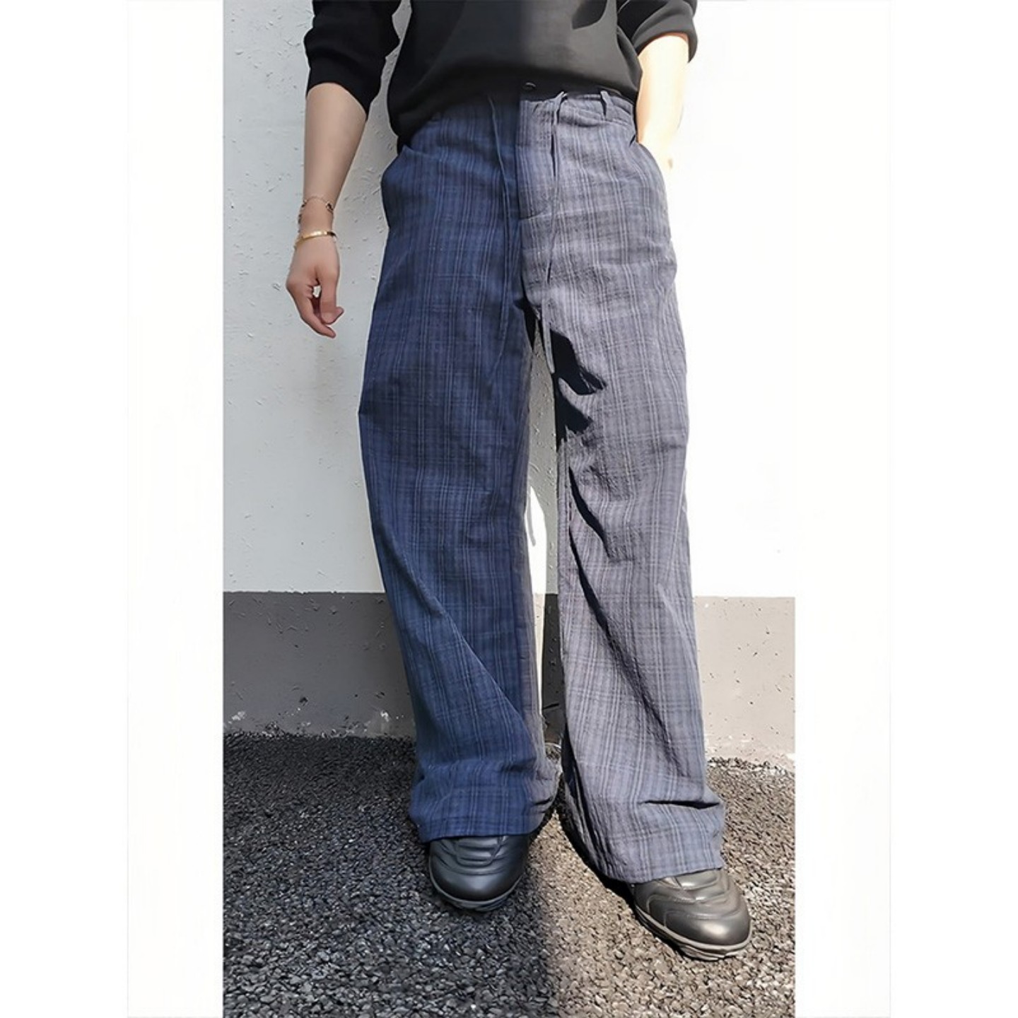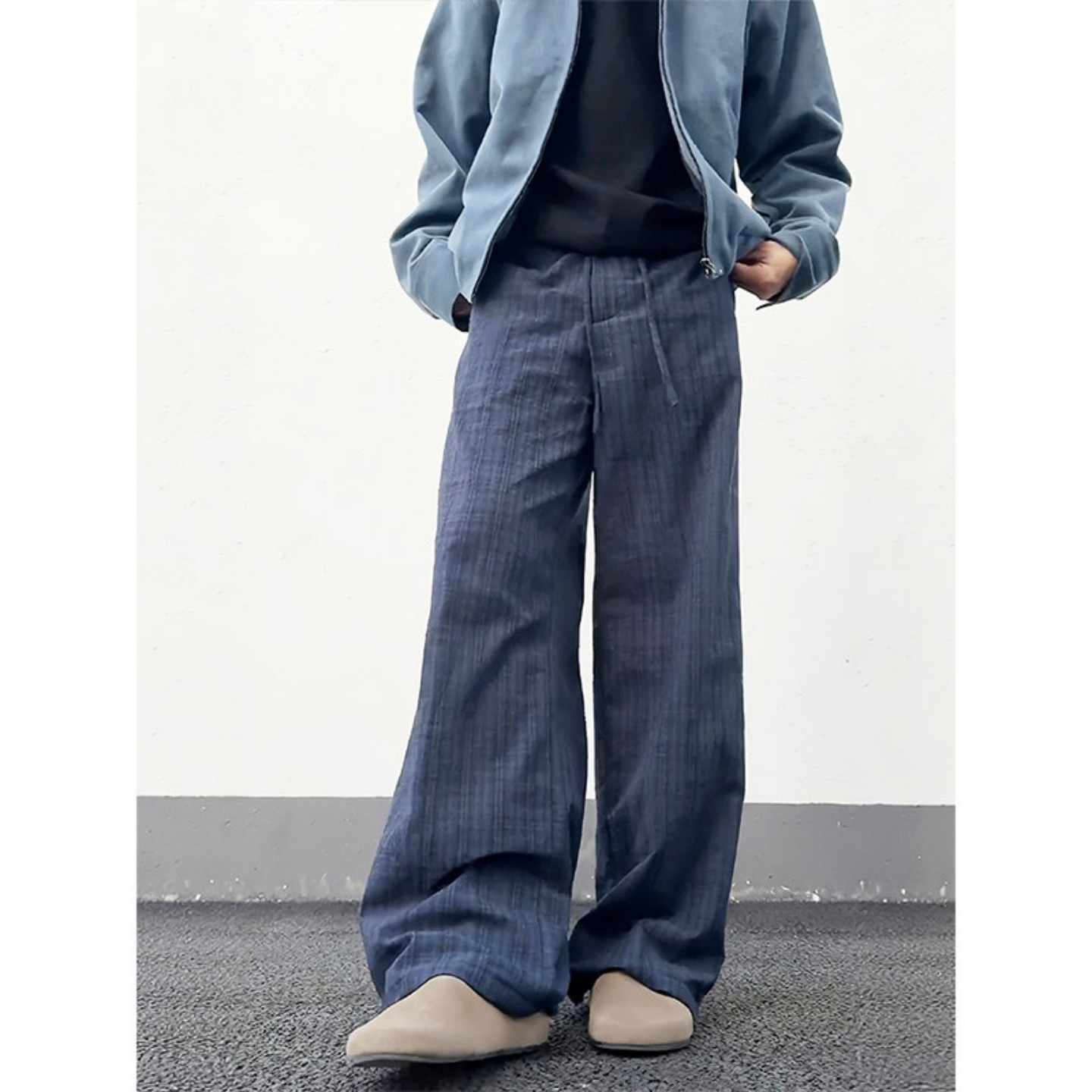 老钱风亚麻格子裤男秋季穿搭美式慵懒风垂感阔腿裤宽松弯刀休闲裤