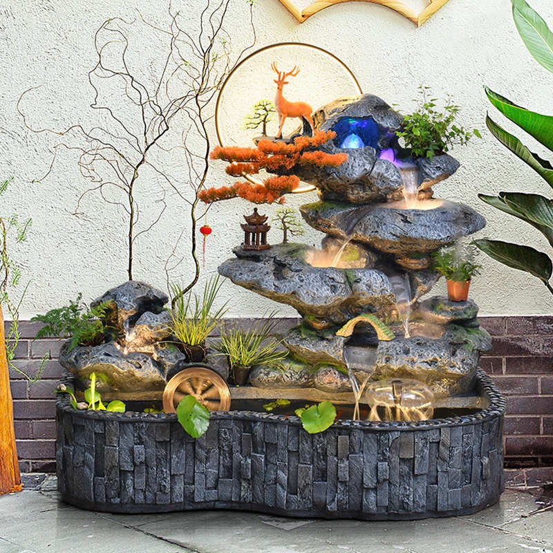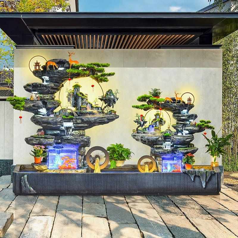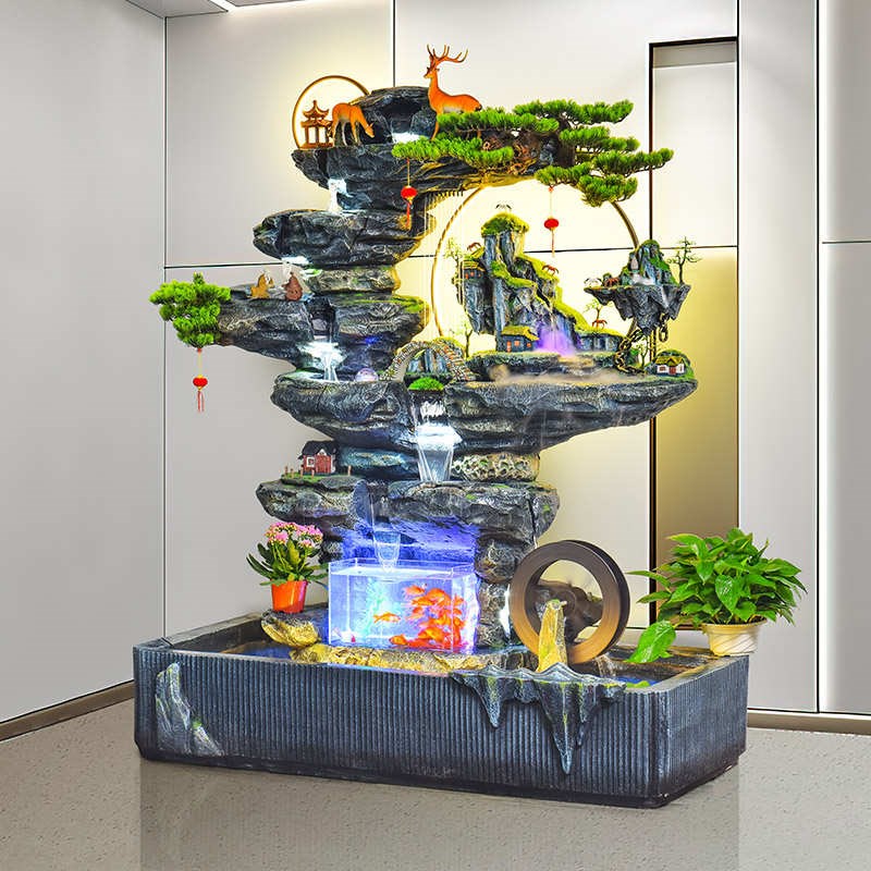 大型假山流水鱼缸玄关角落阳台装饰别墅花园庭院造景鱼池喷泉摆件