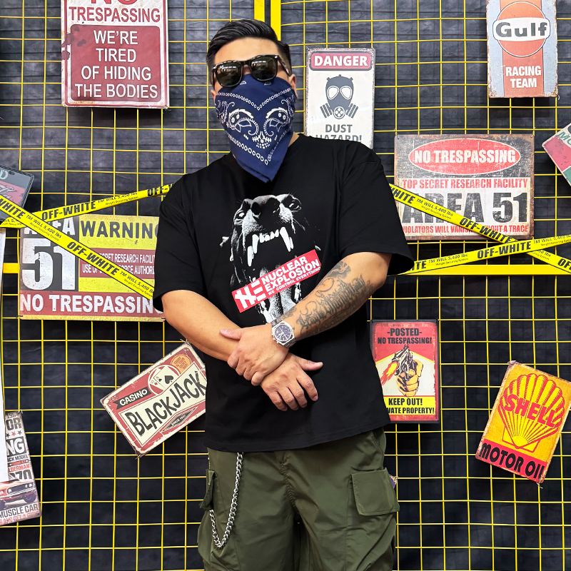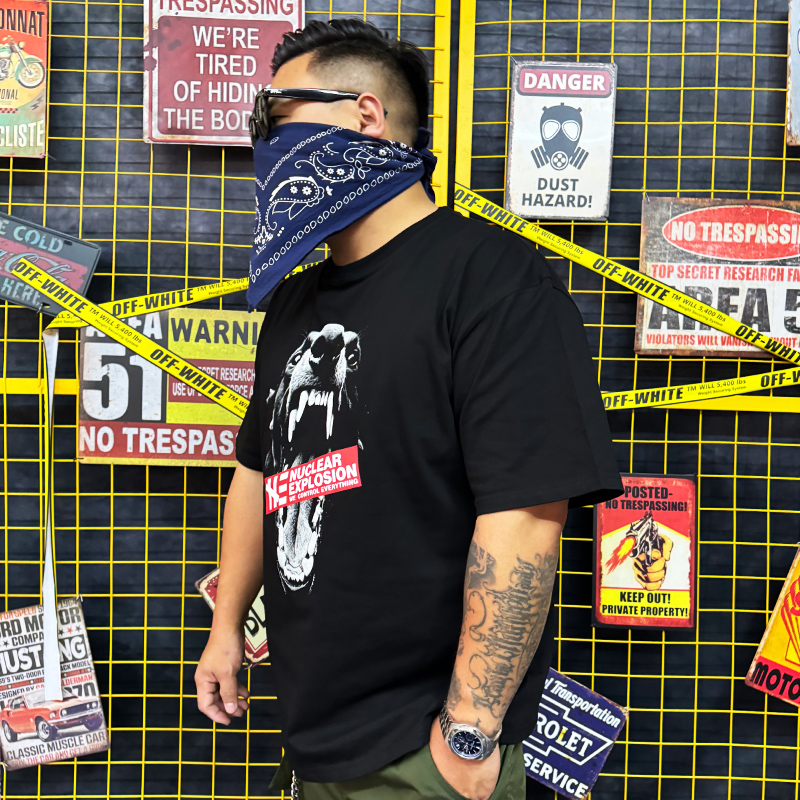 核爆炸潮牌狂暴恶犬夏季250g黑色全棉印花宽松大码半袖短袖T恤男