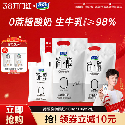 君乐宝简醇0蔗糖酸奶原味低脂青柠袋装风味酸牛奶100g*20袋