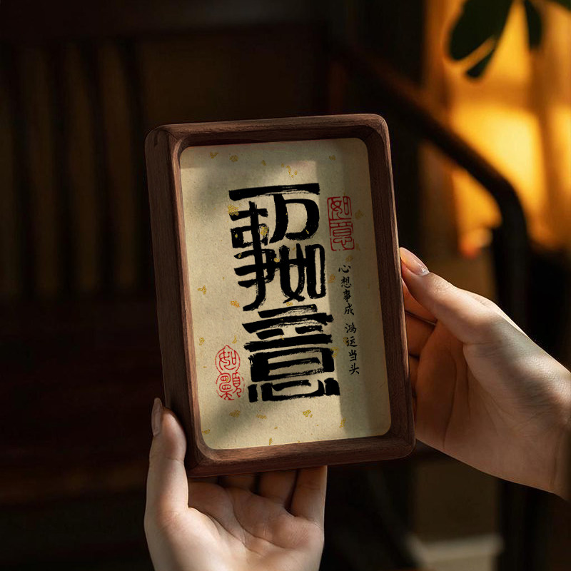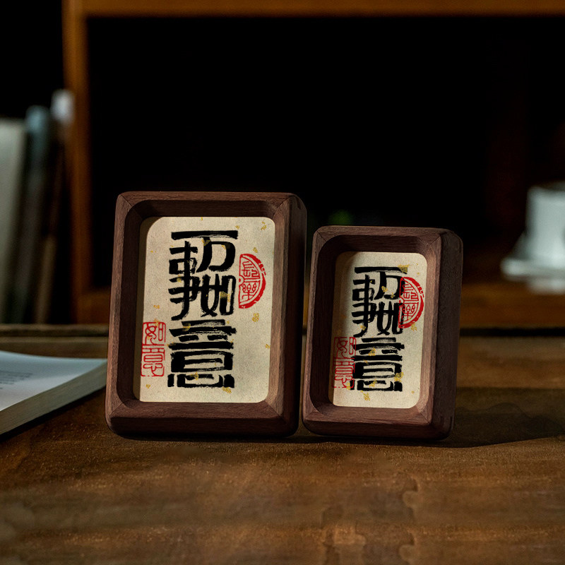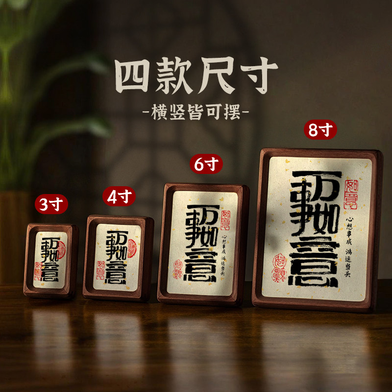万事如意创意文字书法摆件手写复刻办公室桌面装饰画摆台实木相框