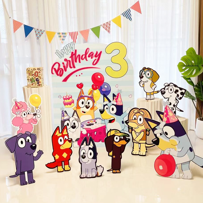 宝宝生日装饰布置布鲁伊主题bluey派对家庭装扮气球kt板背景墙