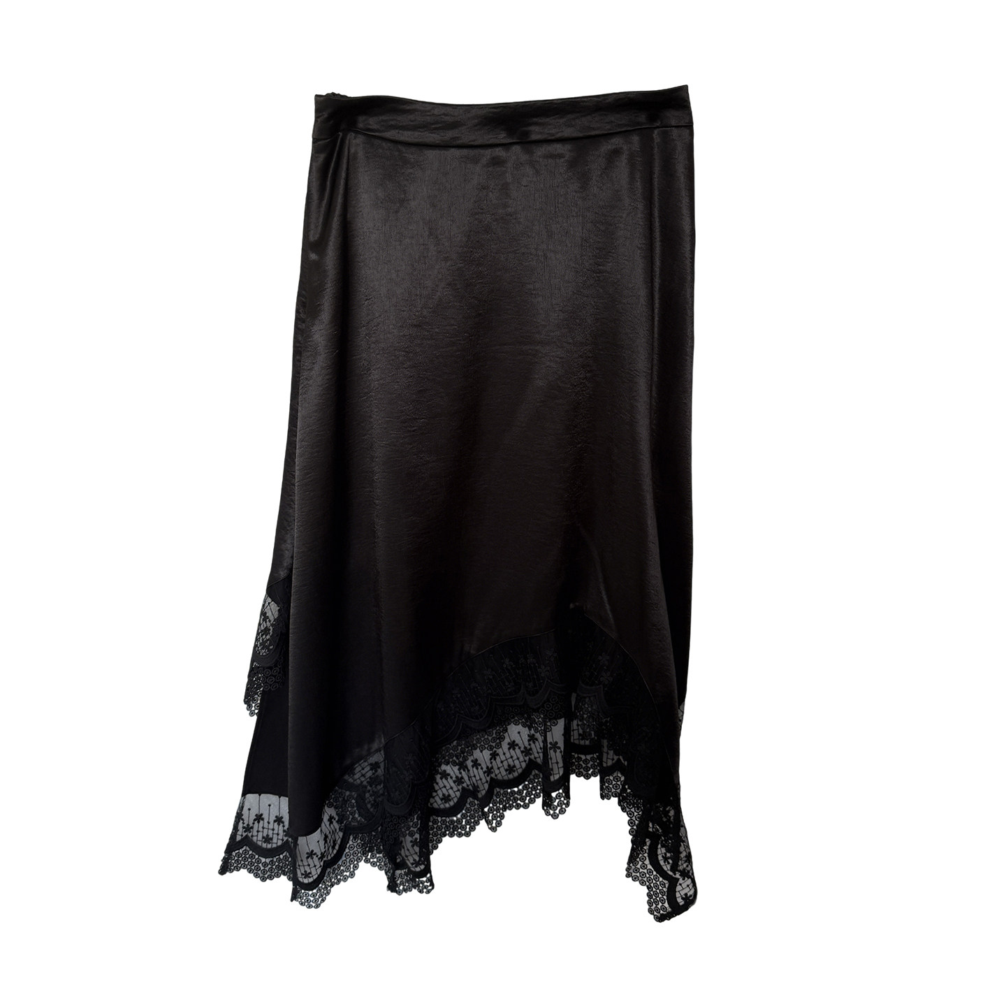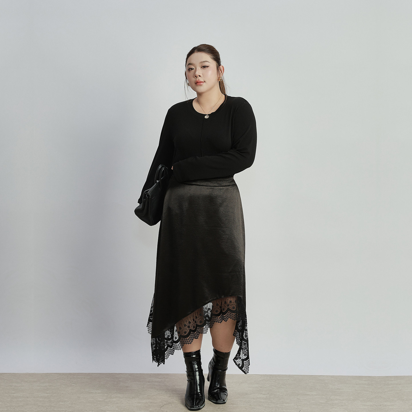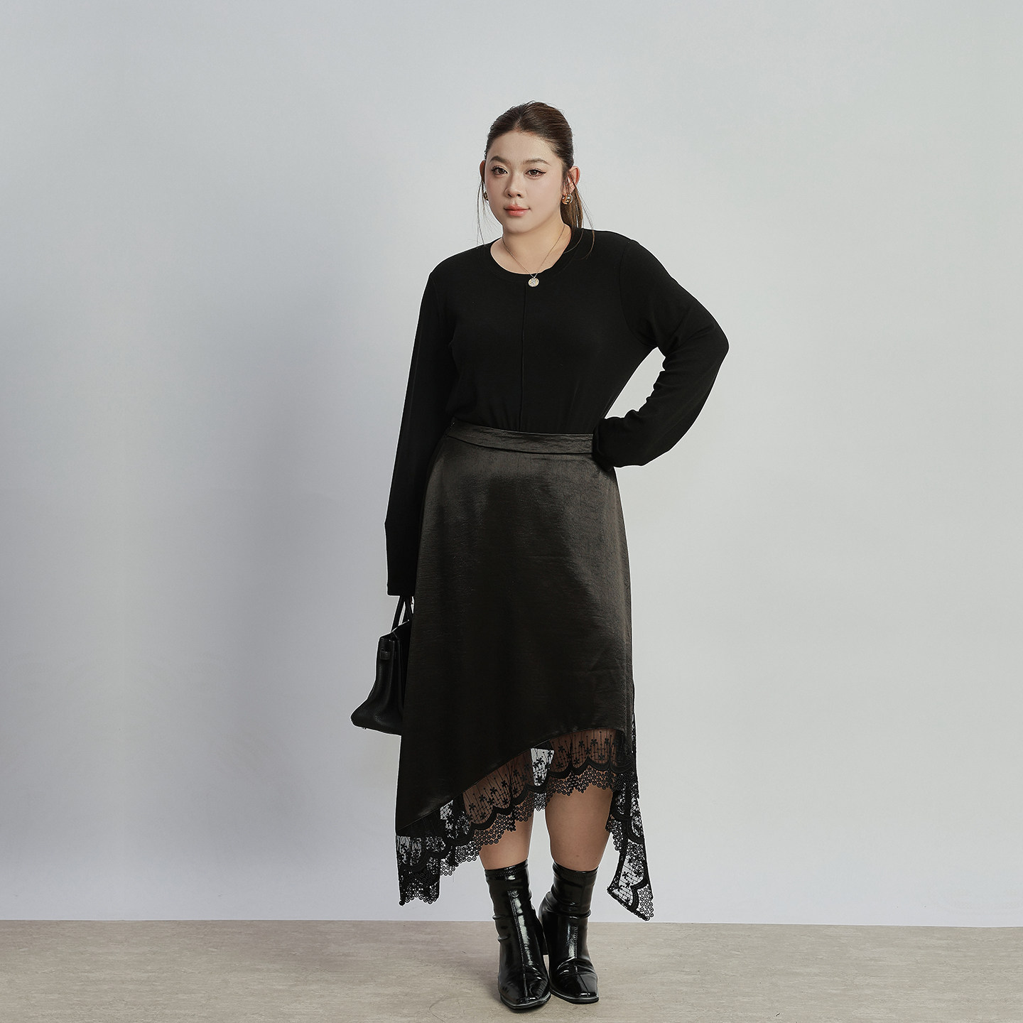 大码女装2026春装新款胖mm高腰显瘦遮胯蕾丝边不规则缎面半身裙
