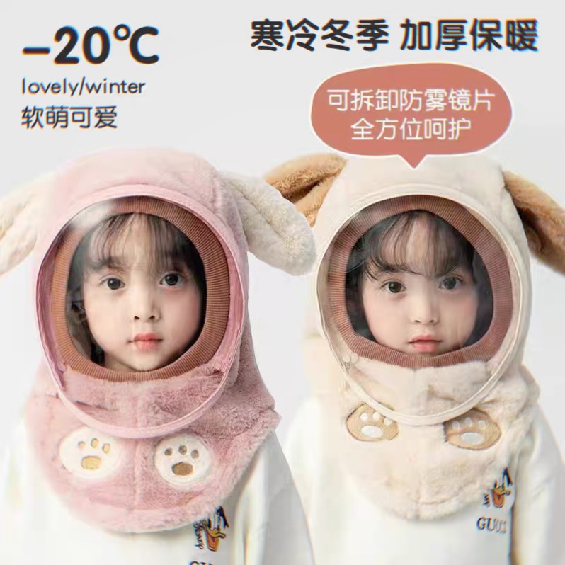 宝宝帽子围巾一体秋冬季男童毛绒帽女儿童护耳帽冬天可爱保暖防风