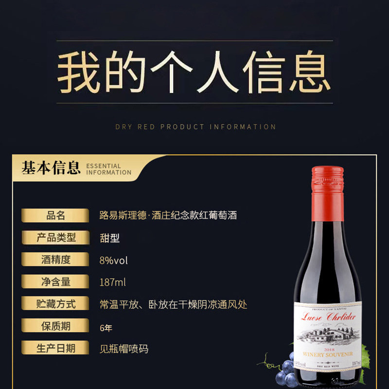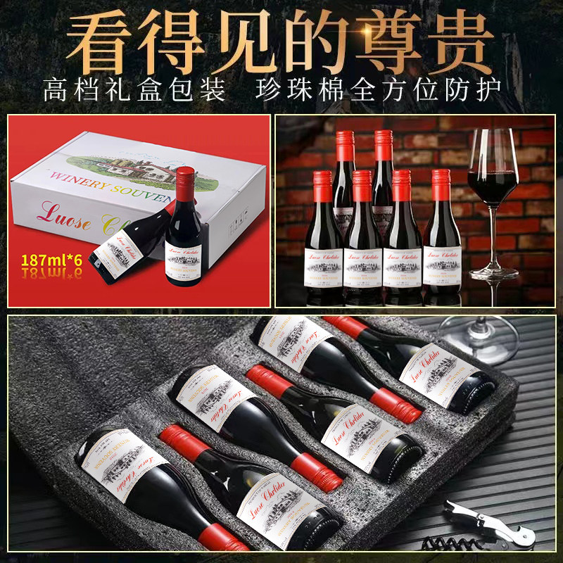 红酒6瓶礼盒装进口红酒小瓶干红甜型葡萄酒187ml聚会送礼多规格