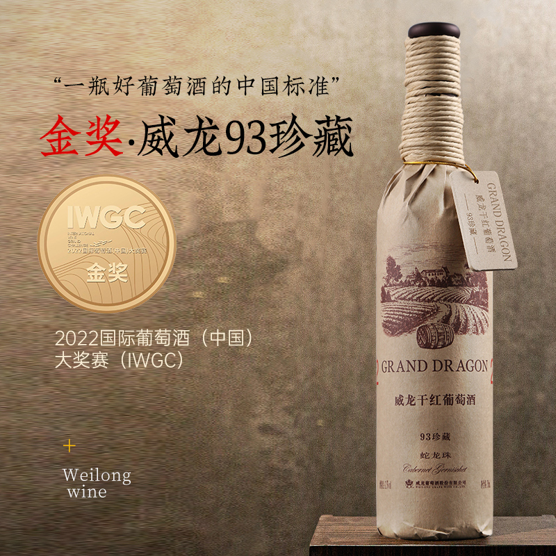 威龙93珍藏蛇龙珠干红葡萄酒橡木桶陈酿热红酒整箱送礼官方旗舰店