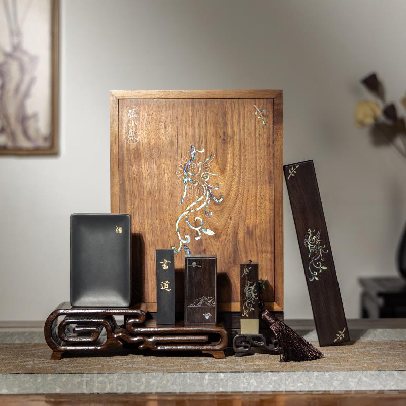 新款张小凤 鸾凤集 文房四宝套装砚笔墨纸砚摆件宣纸毛笔镇尺高档