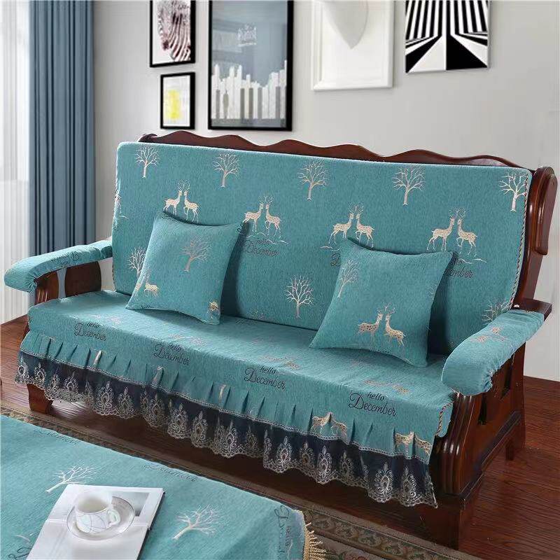 老式三人实木沙发海绵坐垫带靠背加厚防滑中式红木秋冬款可拆洗