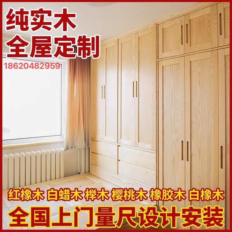 全屋定制天然原木实木红橡木家具樱桃木整体衣柜松木榻榻米床定做