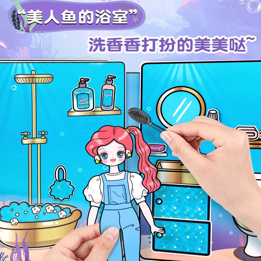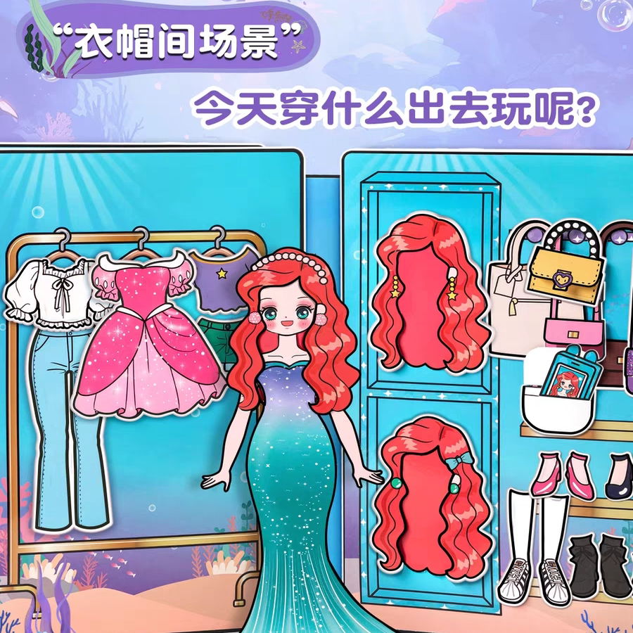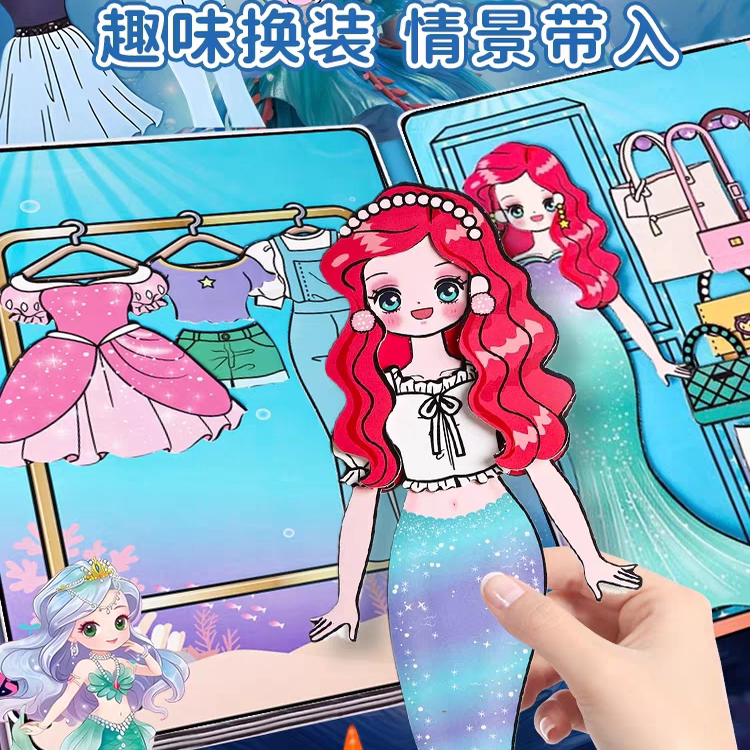 美人鱼公主安静书网红2025新款免裁剪超大本换装贴纸女孩儿童手工