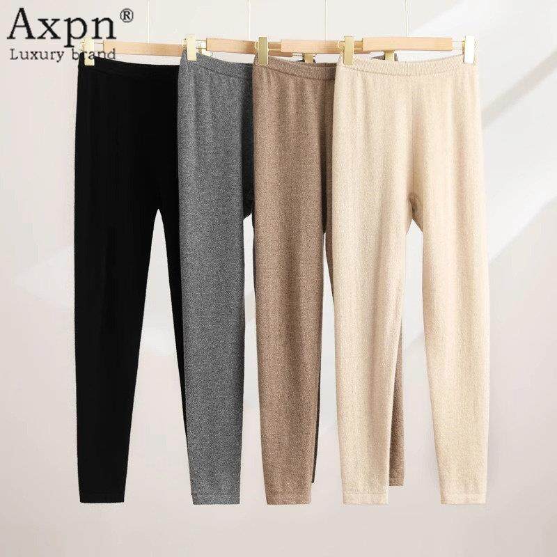 鄂尔多斯市100%纯山羊绒打底裤女秋冬内搭外穿高腰紧身针织毛线裤
