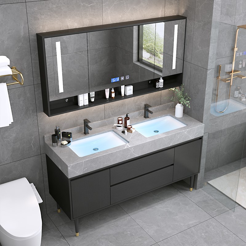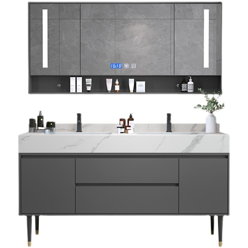 轻奢现代简约双盆浴室镜柜组合岩板定制套装卫生间洗脸.手盆洗漱