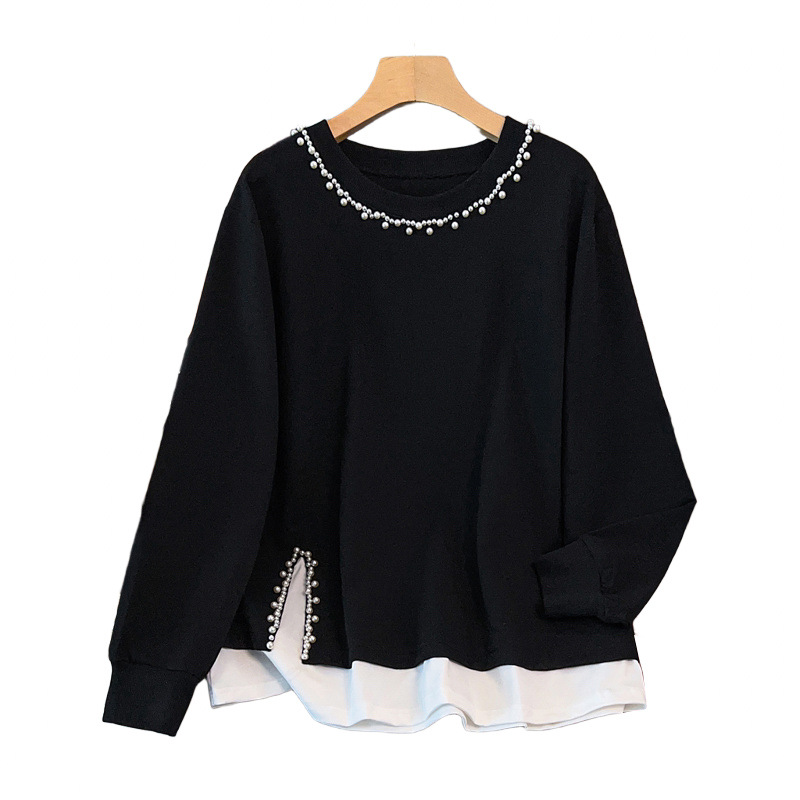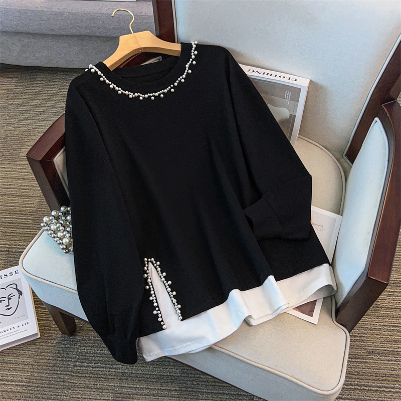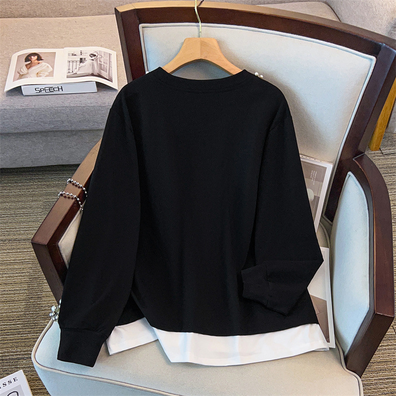 300斤特大码秋季假二件卫衣女宽松遮肚子200胖mm加肥显瘦休闲上衣