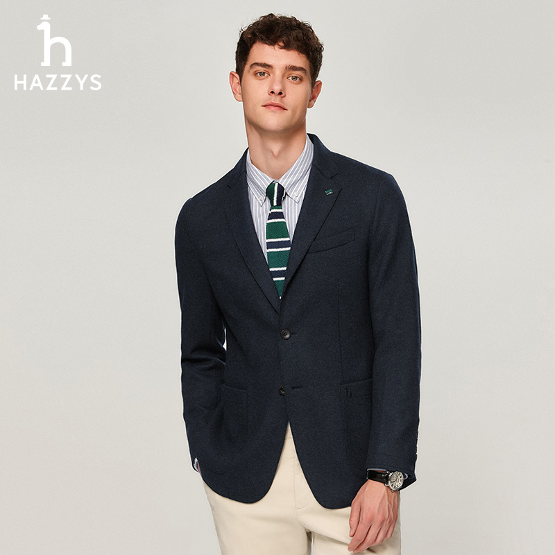 【羊毛混纺】Hazzys哈吉斯秋冬上衣男保暖外套商务休闲单西