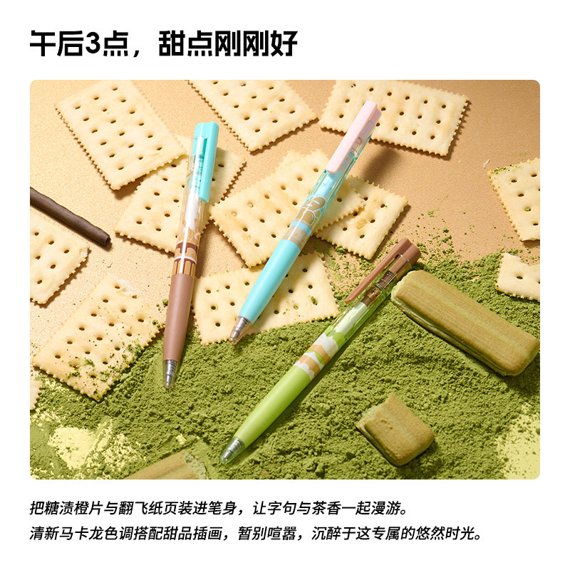KACO 中性笔K7慵懒下午茶黑笔按动式3支装双珠速干高颜值ins风少女心0.5mm笔芯学习用刷题文具可爱顺滑考试
