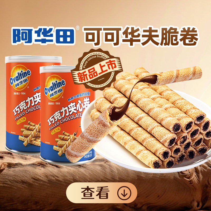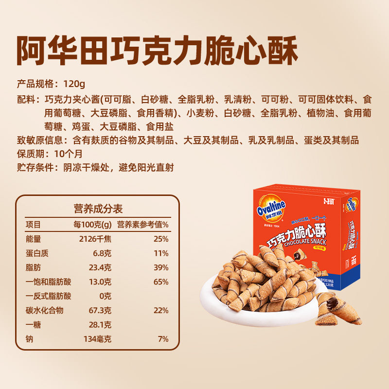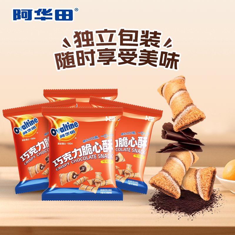 阿华田巧克力脆心酥可可味注心饼干薄脆独立小包装办公室儿童零食