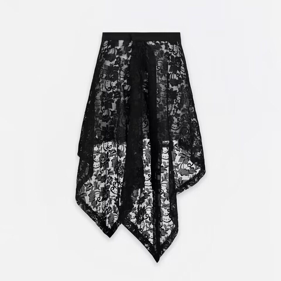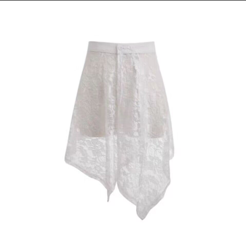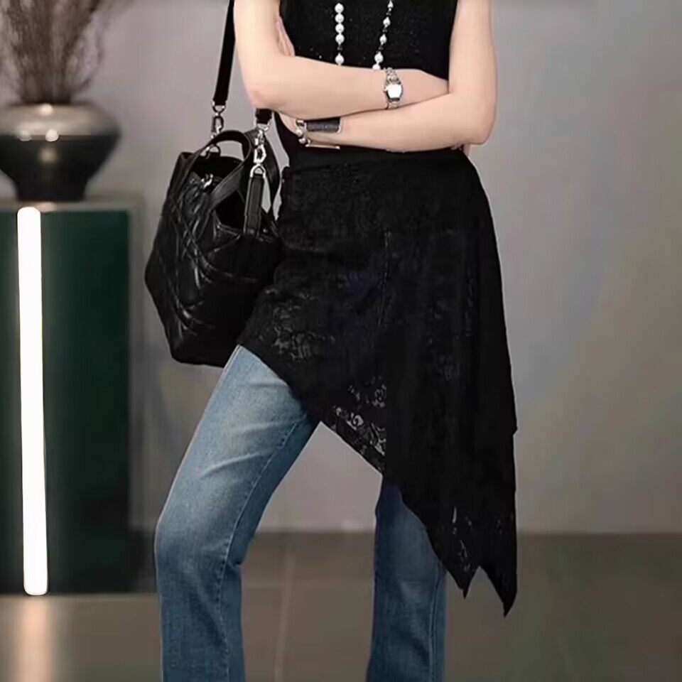 春秋叠穿下摆斜裁蕾丝屁帘女