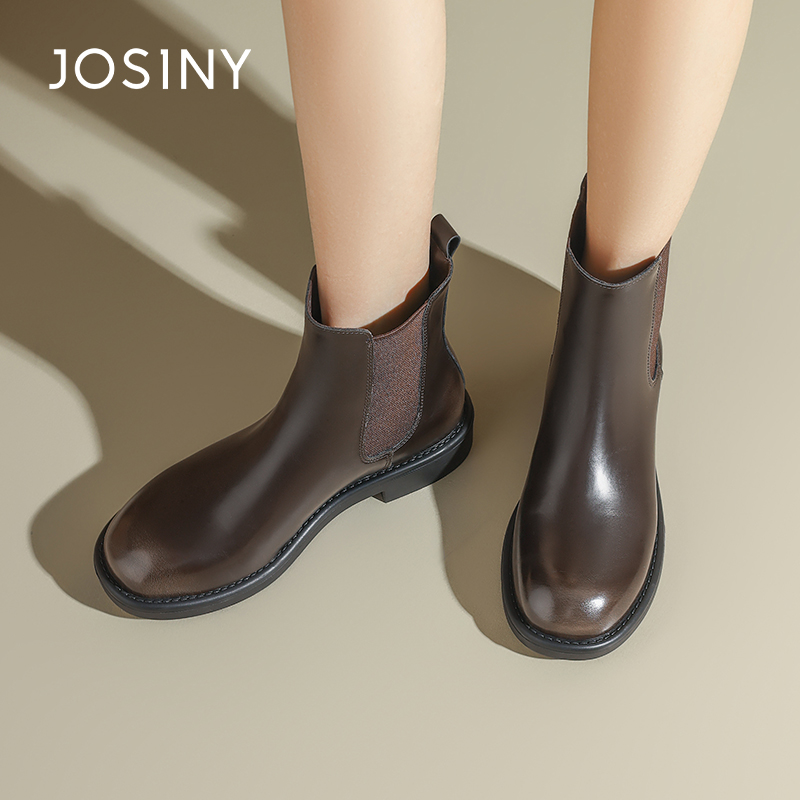 卓诗尼2025秋冬季新款厚底女鞋切尔西靴短靴子英伦风加绒圆头粗跟