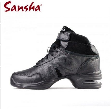 Sansha法国三沙运动舞蹈鞋真皮气垫现代舞鞋高帮增高鞋广场舞皮面