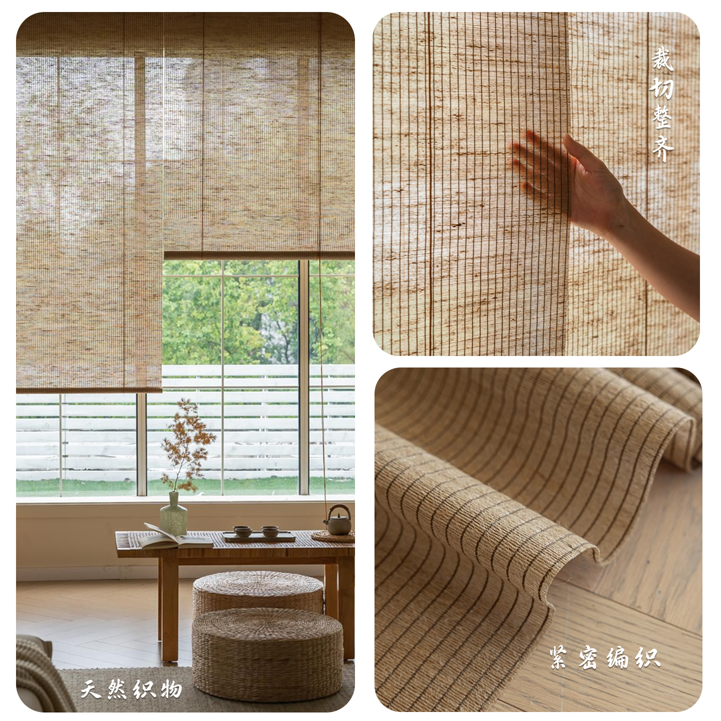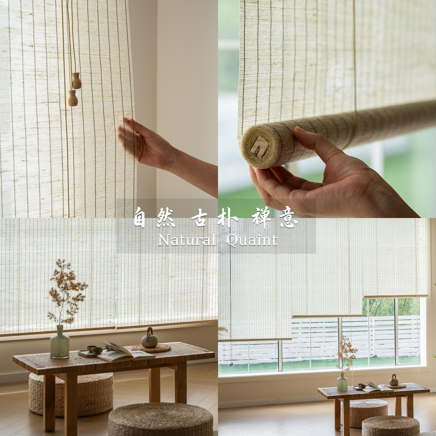 新中式窗帘纯天然亚麻手工卷帘茶室窗帘遮光遮阳帘隔断免打孔定制