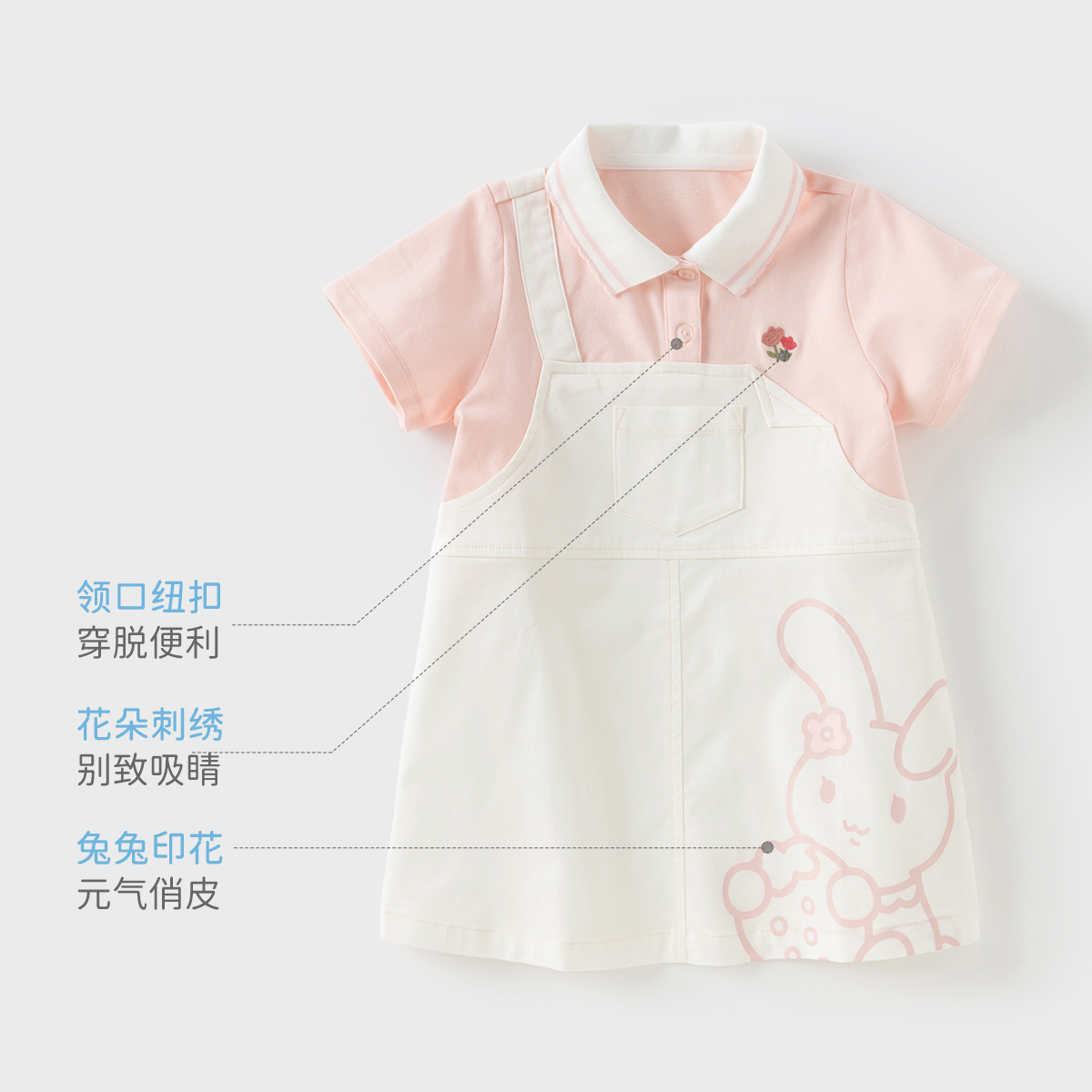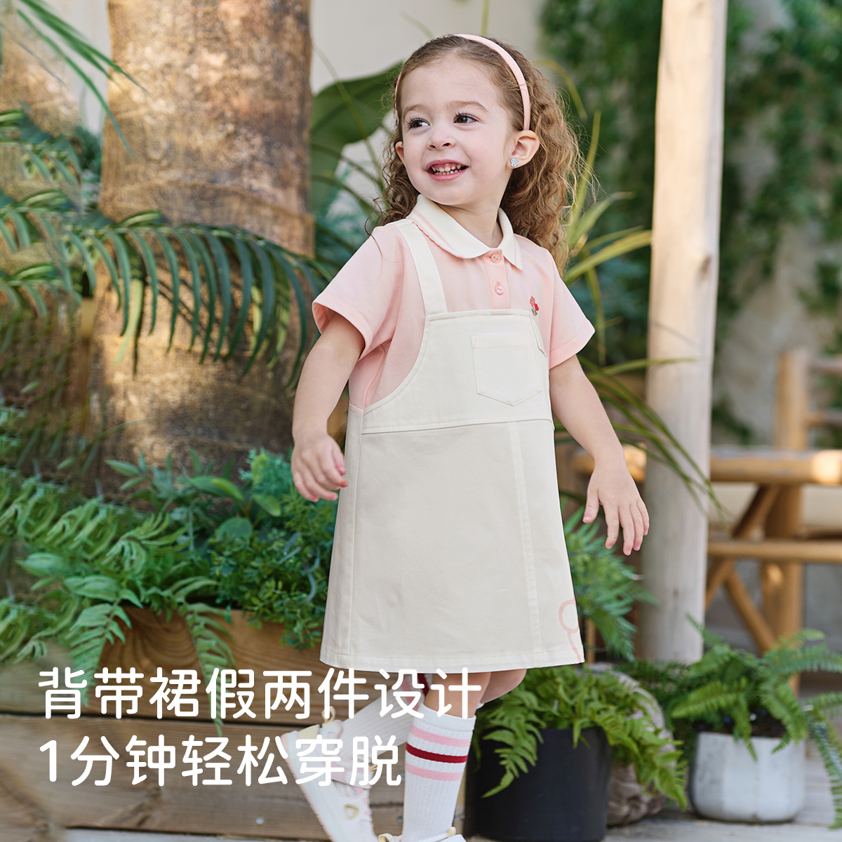 戴维贝拉女童连衣裙2025新款夏装儿童学院风裙子宝宝假两件polo裙
