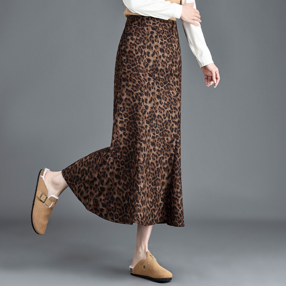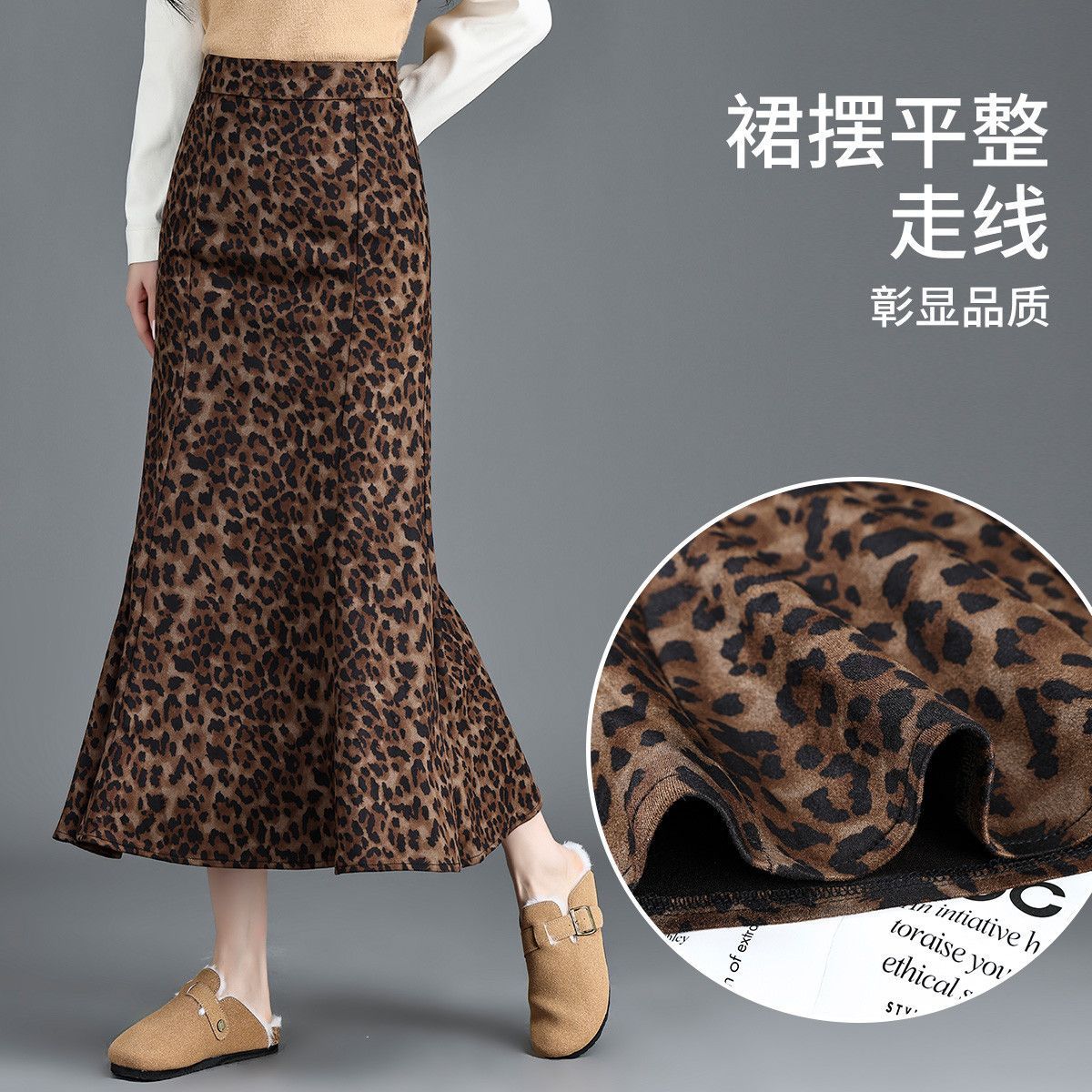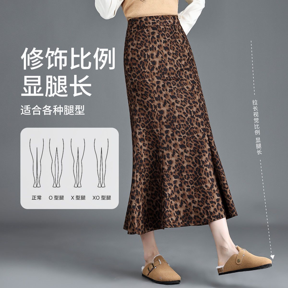 白鹿语复古豹纹半身裙2025秋冬新款女人味高腰显瘦遮肉长款鱼尾裙