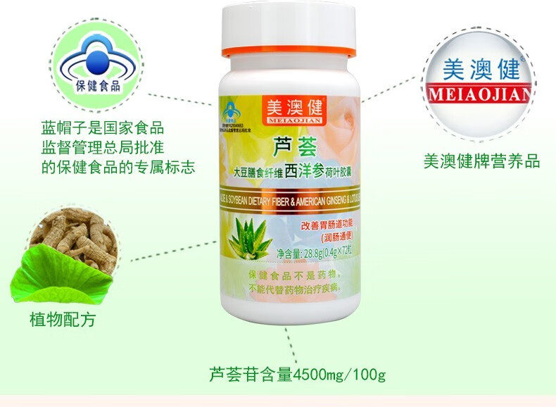 美澳健芦荟胶囊润肠通便官方旗舰店大豆膳食纤维西洋参荷叶胶囊