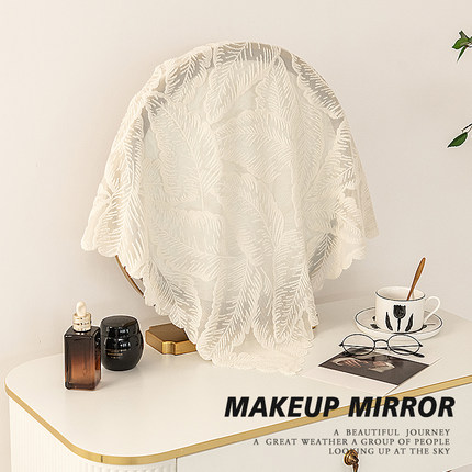 欧式梳妆台镜子防尘盖布化妆镜圆形ins风方巾绣花纱蕾丝防尘盖罩
