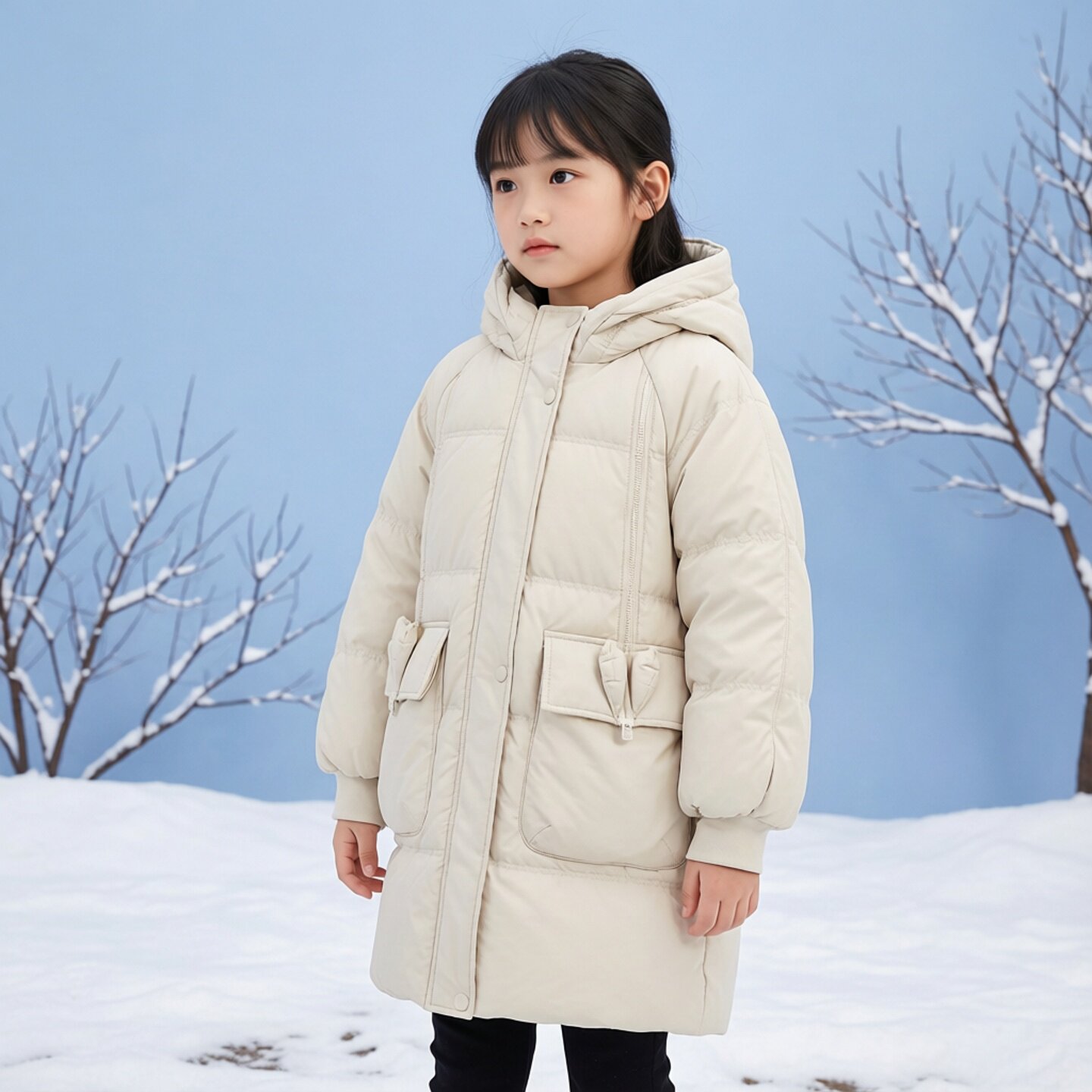 商场同款Abckids中长款连帽羽绒服2025冬季新款工装口袋百搭外套
