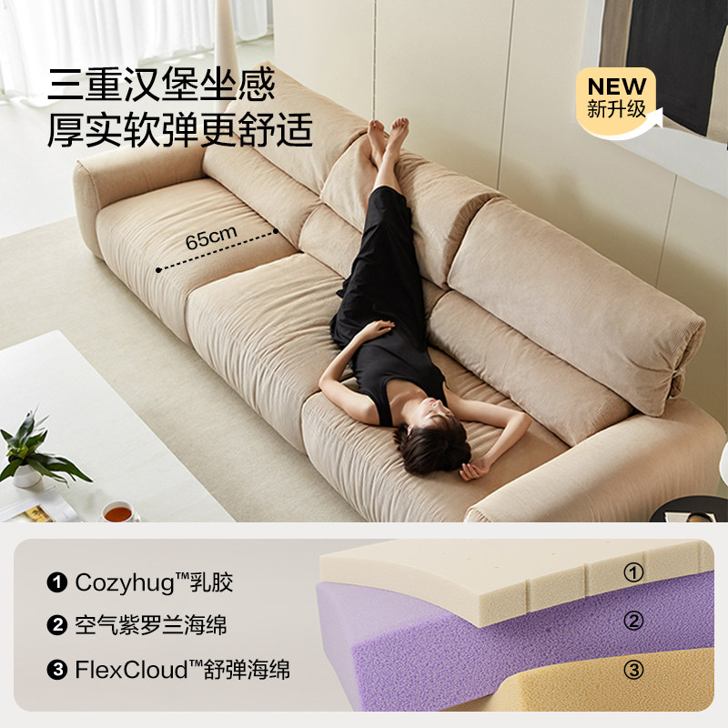 林氏家居拆洗灯芯绒布艺沙发客厅新款云朵沙发轻高级家具林氏木业