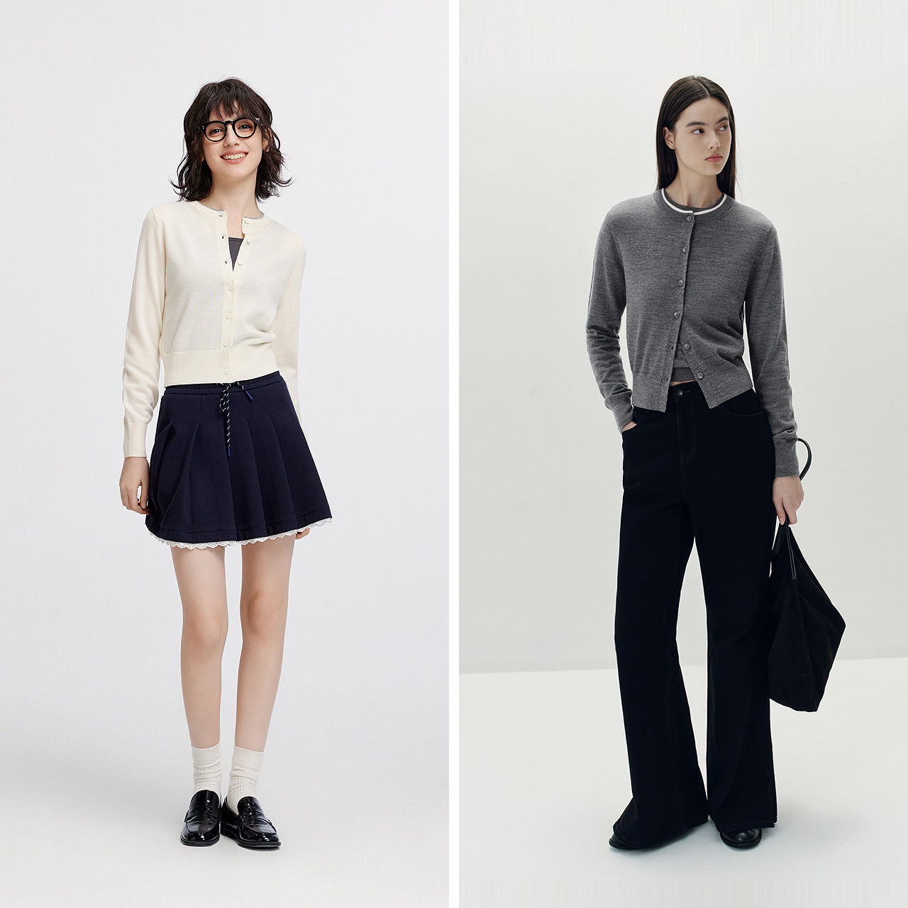 【商场同款】森马针织开衫女短款撞色2025秋新款羊毛101525106006