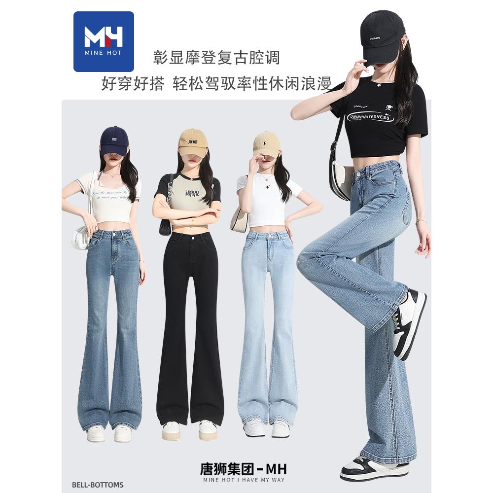 唐狮集团微喇牛仔裤女2025夏季新款高腰修身显瘦百搭小个子喇叭裤