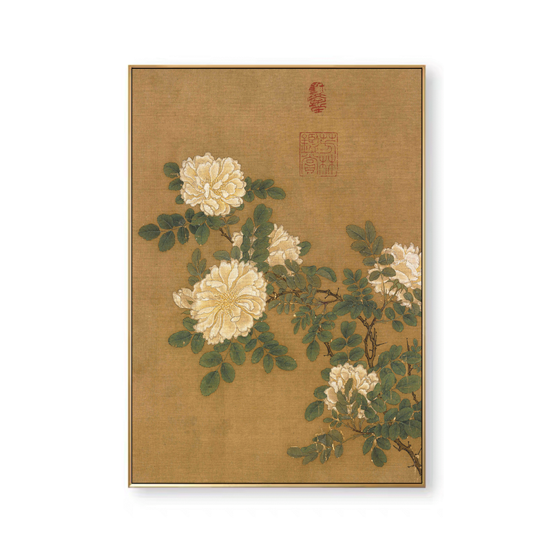 《蔷薇仙杏图》法式中国风客厅玄关装饰画新中式书房画芯不含画框