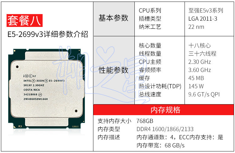 至强 E5 2666V3 2683V3 2695V3 2696V3 2697V3 2698V3 2699V3 CPU