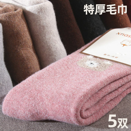 女士特厚保暖毛巾袜爱心装饰东北户外下雪冬天纯棉保暖毛圈棉袜