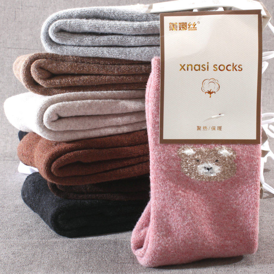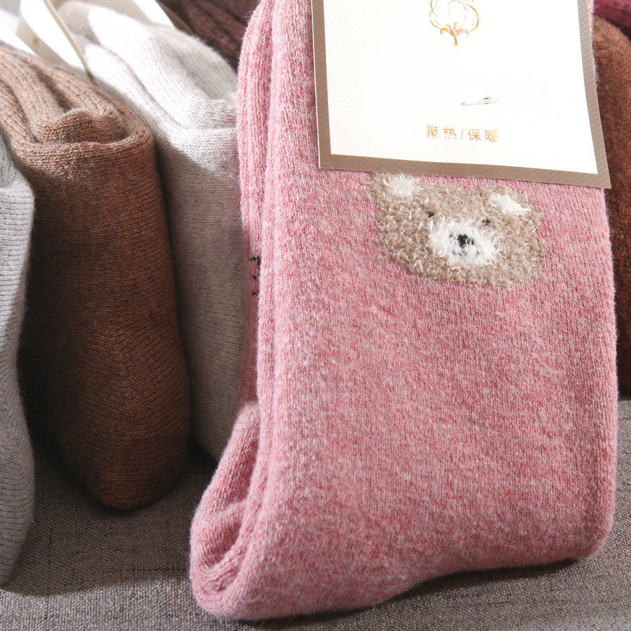 女士特厚保暖毛巾袜爱心装饰