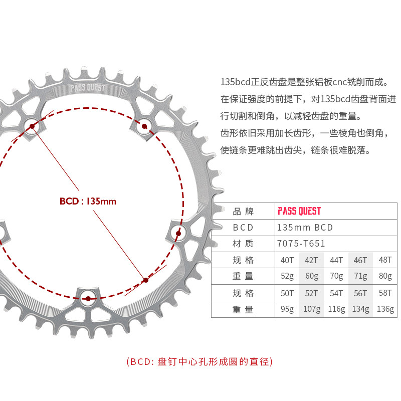 PASS QUEST BCD135 死飞场地单速盘片 1/8厚度链条 CP曲柄用TRACK