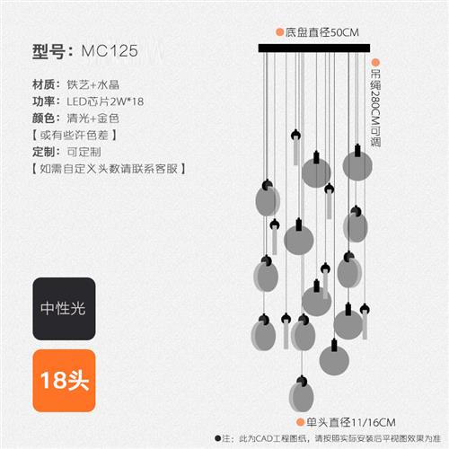 后现代楼梯吊灯水晶别墅复式楼客厅简约创意旋转楼梯间轻奢长吊灯