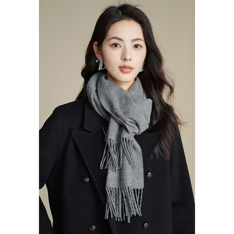 【90绵羊毛+10骆驼绒】晚白2025年秋冬新款含流苏百搭气质围巾